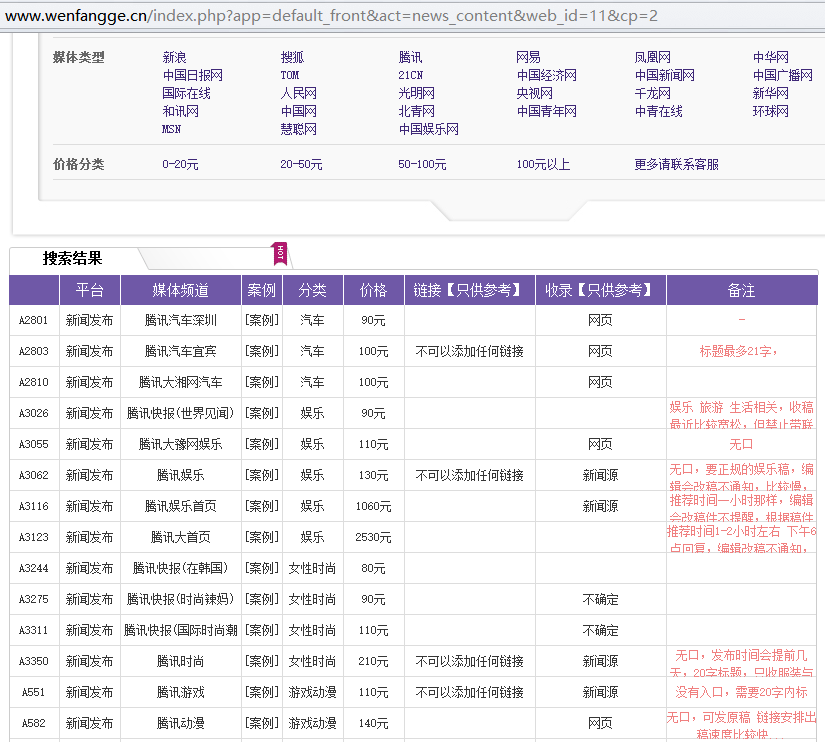 騰訊動漫頻道新聞發(fā)布價格:140元(無口,可發(fā)原稿 鏈接安排出稿速度比較快)