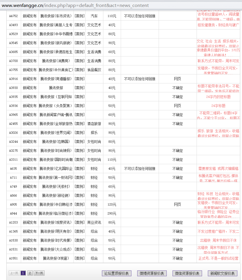 文芳閣部分騰訊快報(bào)發(fā)稿資源及價(jià)格