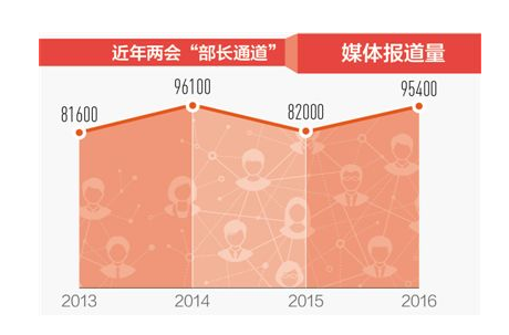 根據(jù)百度和搜狗在搜索引擎方面的大數(shù)據(jù)分析,從2013年以來,“部長通道”的媒體報(bào)道量呈現(xiàn)穩(wěn)中有升。尤其是“部長”這個(gè)關(guān)鍵詞,從百度搜索指數(shù)來看,在2013年至2016年間,每一年的搜索峰值都出現(xiàn)在全國兩會(huì)期間,這說明網(wǎng)友在兩會(huì)期間對“部長通道”等信息和新聞的關(guān)注度很高。