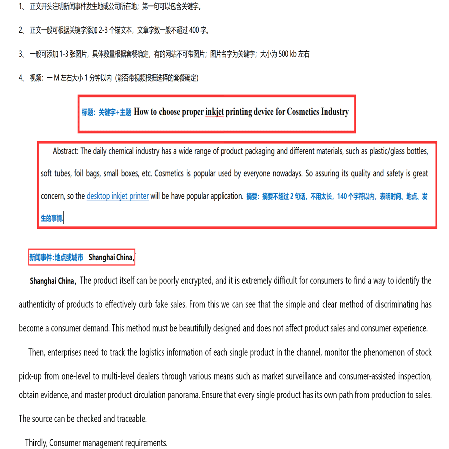 國外媒體的廣告投放不同于國內(nèi)的媒體,請按下面的格式把文檔重新整理后發(fā)給客服,謝謝。內(nèi)容必須是合法、正規(guī);反動、暴力、時事、黃色、醫(yī)療、藥品、保健品等一律不發(fā);稿件發(fā)布時間將在提交廣告內(nèi)容后 須經(jīng)媒體編輯審稿,審稿通過后將在24小時內(nèi)發(fā)布。發(fā)布媒體、發(fā)布內(nèi)容、發(fā)布要求請在下訂單后在廣告發(fā)布后臺進行確認,提交后不能修改。