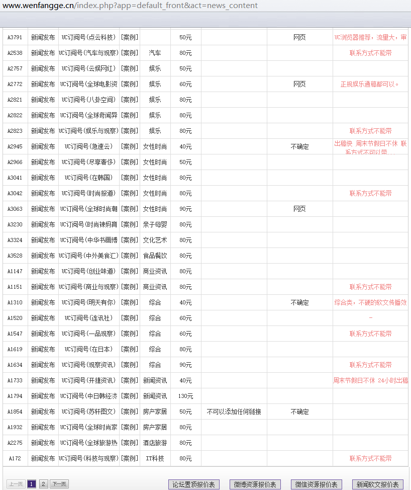 文芳閣部分UC入駐賬號資源發(fā)稿報(bào)價(jià)
