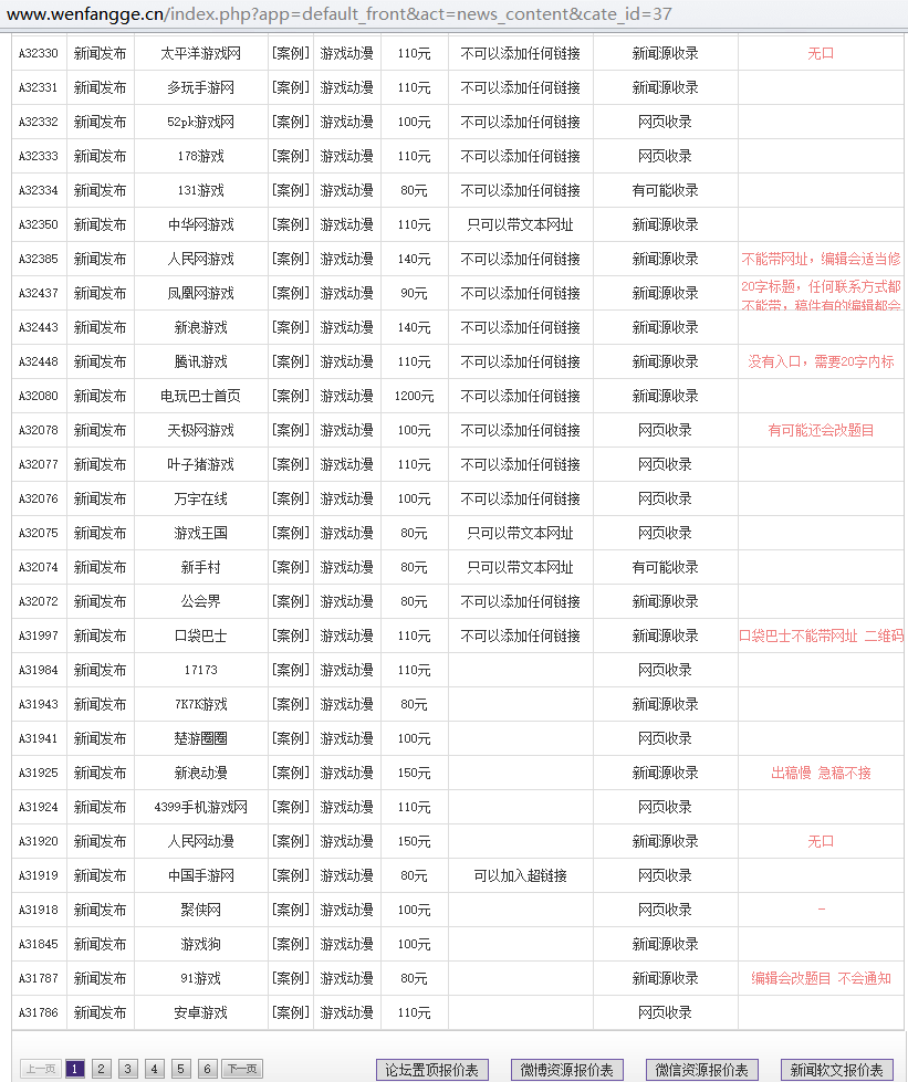 文芳閣部分游戲媒體發(fā)稿價(jià)格