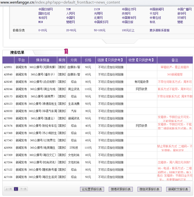 360眾媒平臺部分軟文發(fā)稿資源價格