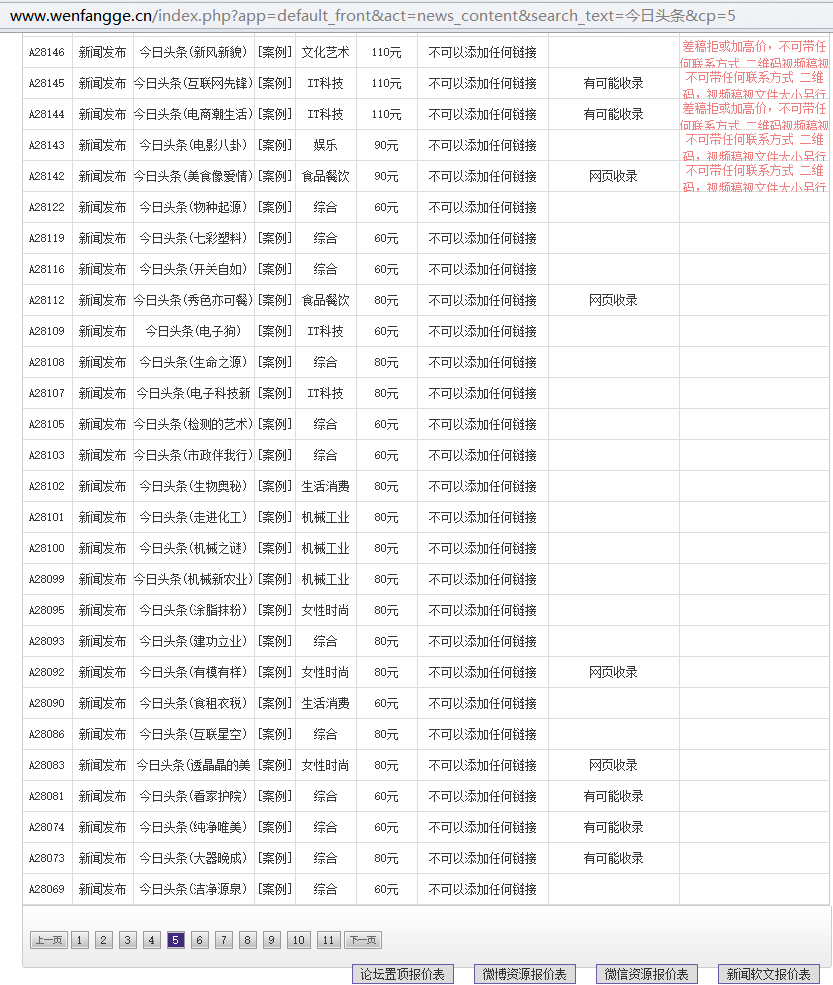 今日頭條平臺(tái)部分軟文發(fā)稿資源價(jià)格